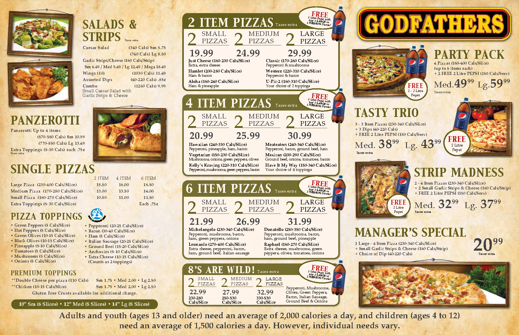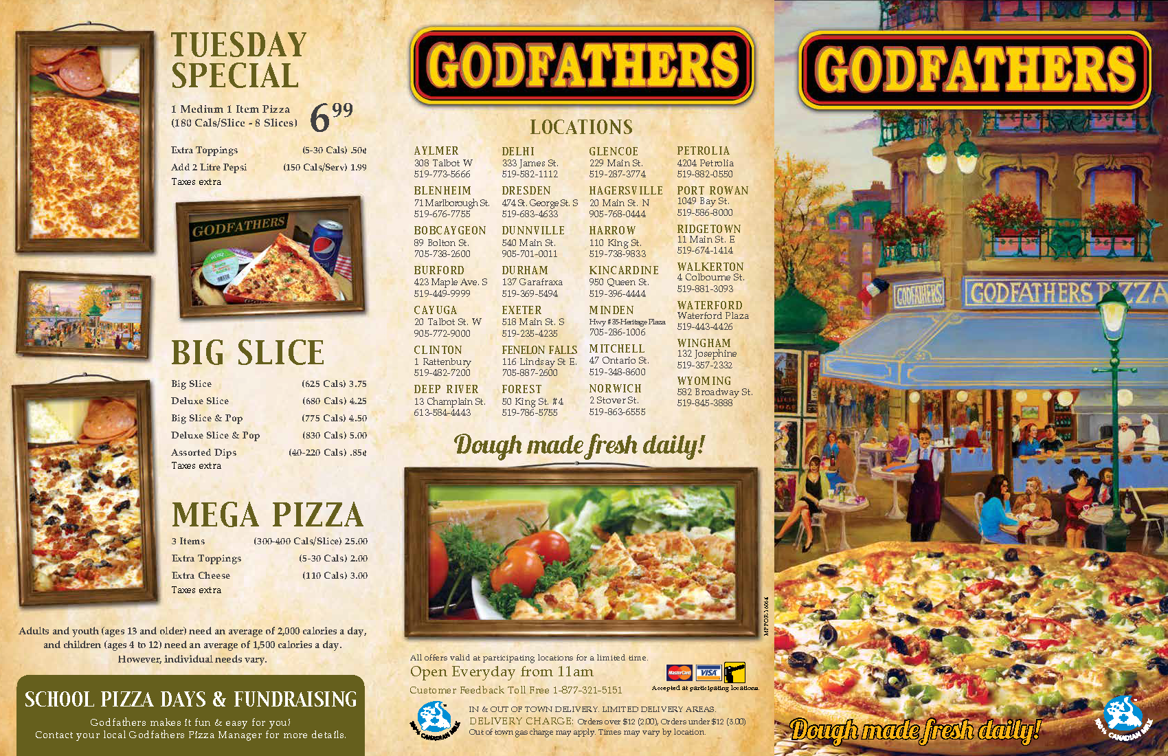 At Godfather’s Pizza our commitment to our customer is to provide the best tasting fresh pizza made with wholesome ingredients and 100% mozzarella cheese. Godfathers will continue to provide quality service and superior product to customers, friends and family.